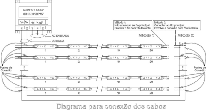 | Máximo de peças na conexão em série | ≤ 20 peças |